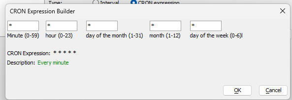 If you click on the Build CRON Expression button, the following dialog is shown. The dialog shows the human readable description of the CRON expression.