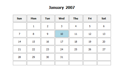 where days is a comma delimited list of days to highlight (e.g. 5,6,7). You can also highlight a range of dates (e.g.5-8) and you can put a comment in a calendar cell (e.g 5:comment).